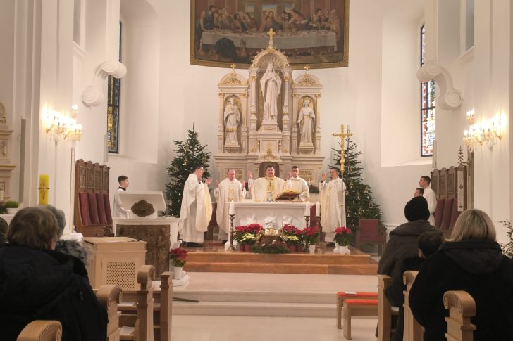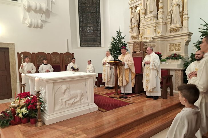K tomu, rektorsku crkvu, posvećenu Bogu u čast Svetoga Križa koja se nalazi u gradu Križevcima, urešuje se naslovom i dostojanstvom konkatedralne crkve, sa svim pravima, počastima i povlasticama te dužnostima i obvezama koje pripadaju crkvama te vrste.