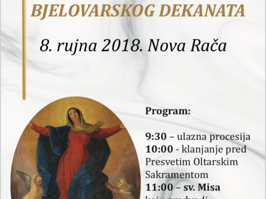 31/08/2018Post navigationPrethodniPrevious post:Spomendan sv. Josipa KalasancijskogaSljedećiNext post:Svetkovina sv. Marka Križevčanina u KriževcimaOstale vijestiSprovodna Misa i ispraćaj vlč. Mate Trgovčevića15/04/2026Preminuo vlč. Mato Trgovčević13/04/2026Biciklijada iz svetišta u Novoj Rači do katedrale u Bjelovaru13/04/2026Hodočašće Kulturno umjetničkih društava u Biskupijsko marijansko svetište u Novu Raču13/04/2026Biskup Huzjak čestitao Uskrs pravoslavnim vjernicima13/04/2026Hodočašće putevima sv. Marka Križevčanina i košičkih mučenika10/04/2026