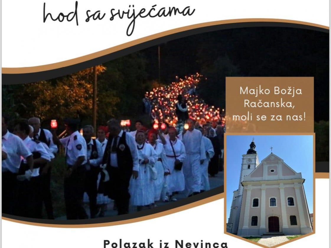 Uoči proslave svetkovine Male Gospe, Biskupijsko marijansko svetište u Novoj Rači oranizira hod sa svijećama pod nazivom “Hodati za Marijom – put poniznosti”.